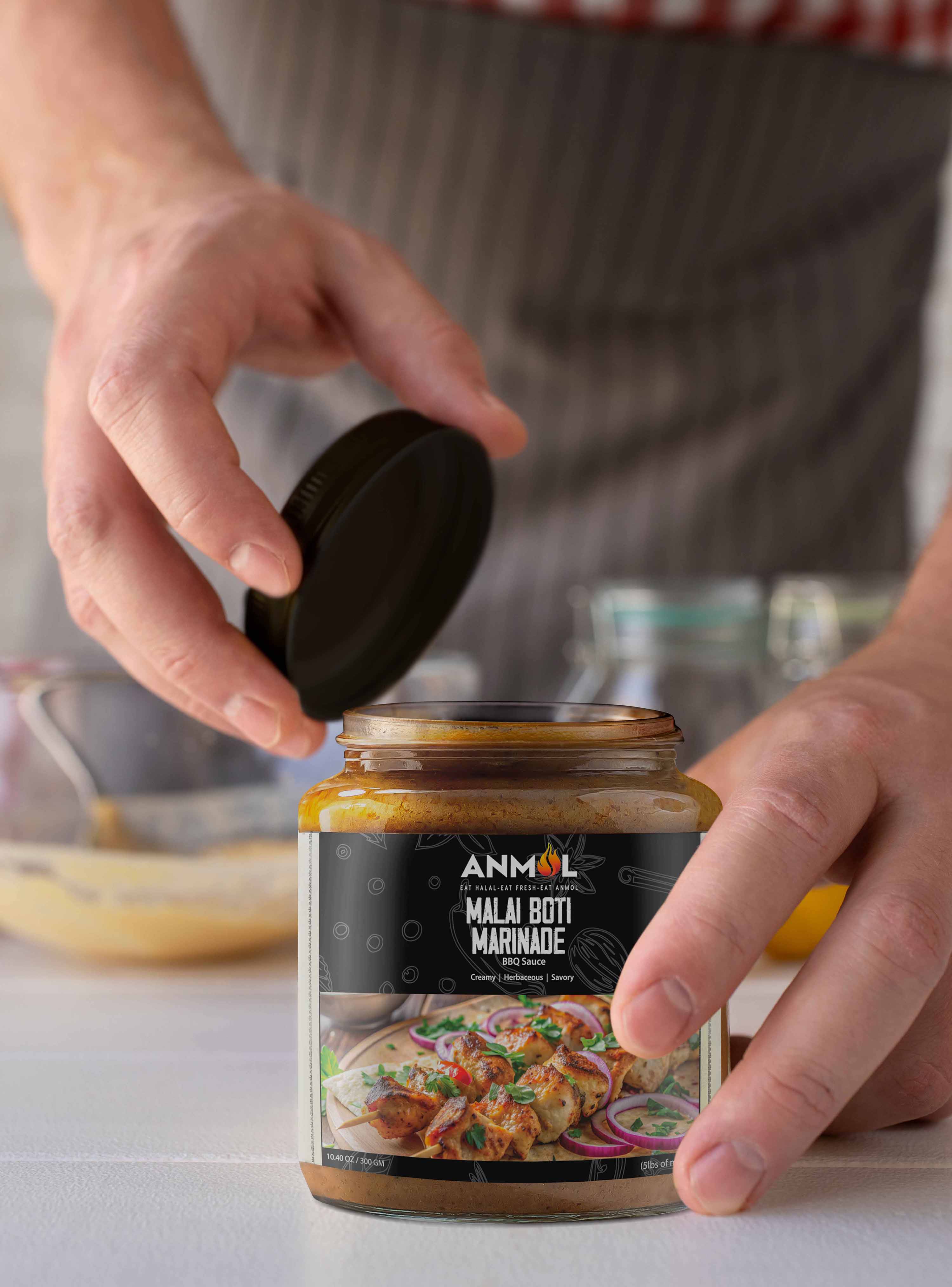 Indulge in the creamy, melt-in-your-mouth goodness of Anmol’s Malai Boti Marinade. Infused with rich dairy and aromatic spices, it creates tender, juicy kababs with a subtle, flavorful kick. Perfect for bringing the essence of South Asia’s finest flavors to your table.